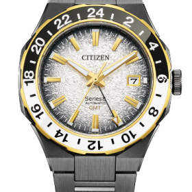 ガラスはデュアル球面サファイアガラスを採用していてクラシカルな印象を受けますね。本来球面ガラスだと光を反射して見えにくくなるのですが、光の約99%を透過させることで反射を抑え、文字板を見やすくする『クラリティ・コーティング』が施されているので、まるでガラスがない様に見えます。とても見やすいです。