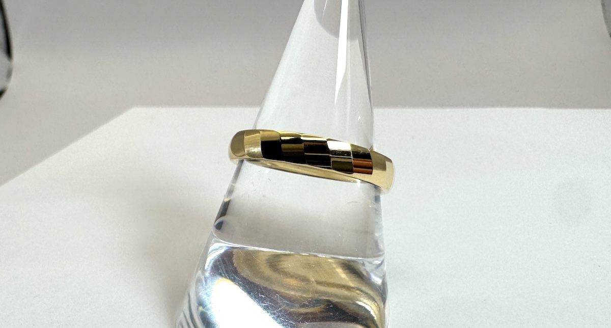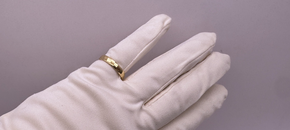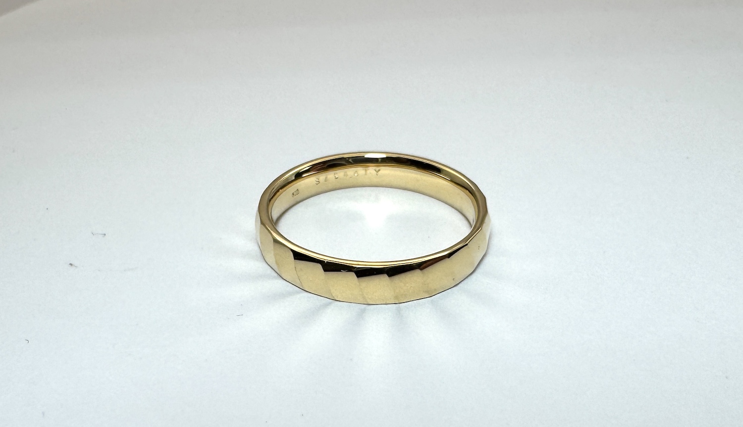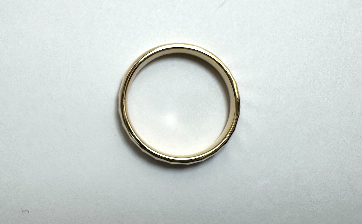 ご希望は「K18で地金だけのリング。石は入れずに少しだけキラキラさせたい」です。