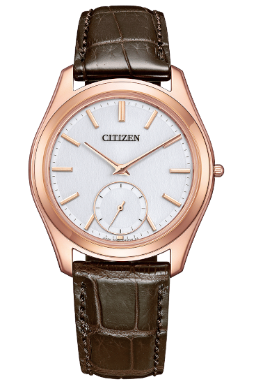 無駄を削ぎ落した薄型フォルムとの調和を追求し、6時位置に配したスモールセコンドはインデックスを短くするなど、ミニマルな要素でまとめています。文字板には日本の伝統工芸、土佐和紙「典具貼紙」を採用し、角度によって表情を変える和紙独特の風合いを愉しめます。 - 商品番号:AQ5024-07A
